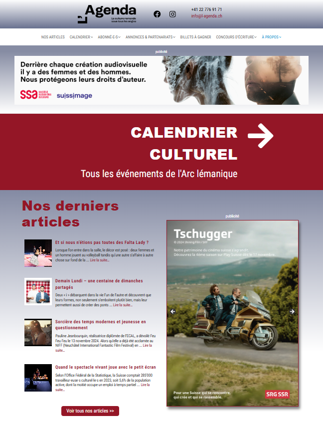 Von Januar 2013 bis August 2024 war «L'Agenda – La culture romande» ein gedrucktes Kulturmagazin, das sechsmal im Jahr erschien. Es bestand aus zwei Teilen: einem redaktionellen Teil mit Fokusartikeln und einem Tagebuch-Teil mit einem Kalender, der Ereignisse in der Genferseeregion zusammenfasst. Genau wie die heutige Webversion, die sich an alle Kulturbegeisterten oder einfach nur Neugierigen richtet, spiegelte sie die künstlerischen Höhepunkte der Region wider, sei es Theater, Musik, Tanz, Zirkus, Shows für junges Publikum oder auch Ausstellungen.